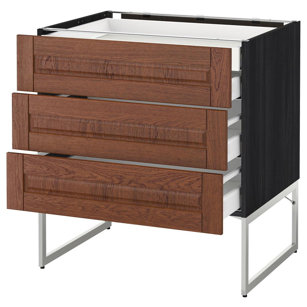 МЕТОД / МАКСИМЕРА Напольн шкаф 3фронт пнл/2низ/2ср ящ - под дерево черный, Филипстад коричневый, 80x60x60 см