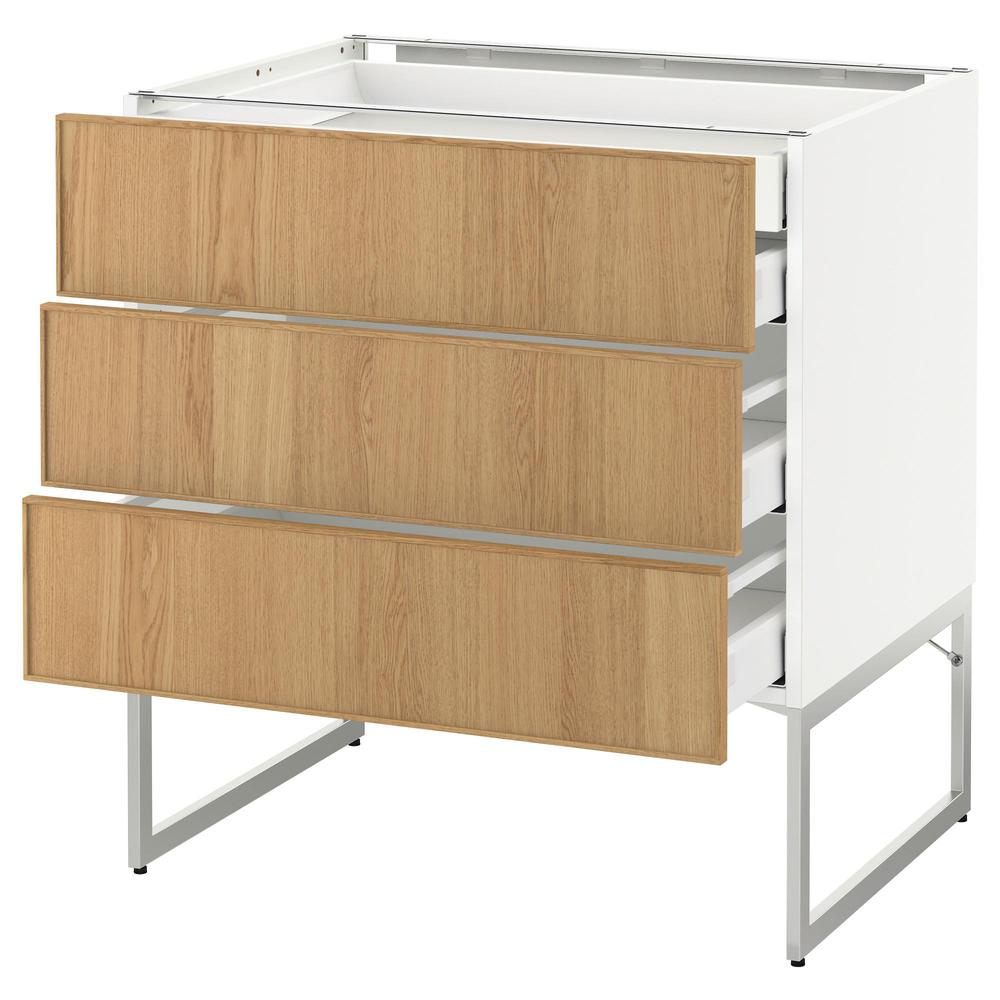 МЕТОД / МАКСИМЕРА Напольн шкаф 3фронт пнл/2низ/2ср ящ - белый, Экестад дуб, 80x60x60 см