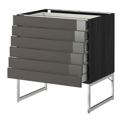 МЕТОД / МАКСИМЕРА Напольн шкаф 6фронт пнл/6 низ ящ - 80x60x60 см, Рингульт глянцевый серый, под дерево черный
