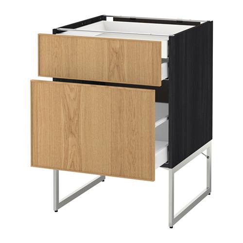 МЕТОД / МАКСИМЕРА Напольн шкаф 2фронт пнл/2низ/1вс ящ - под дерево черный, Экестад дуб, 60x60x60 см