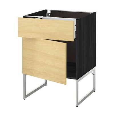 МЕТОД / МАКСИМЕРА Напольный шкаф с ящиком/дверью - 60x60x60 см, Тингсрид под березу, под дерево черный
