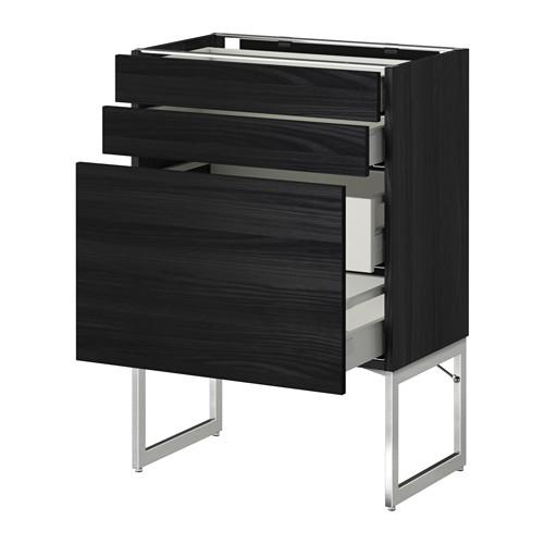МЕТОД / МАКСИМЕРА Напольн шкаф 3фронт пнл/2низ/2ср ящ - под дерево черный, Тингсрид под дерево черный, 60x37x60 см