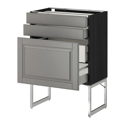 МЕТОД / МАКСИМЕРА Напольн шкаф 3фронт пнл/2низ/2ср ящ - под дерево черный, Будбин серый, 60x37x60 см