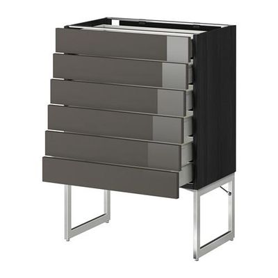 МЕТОД / МАКСИМЕРА Напольн шкаф 6фронт пнл/6 низ ящ - 60x37x60 см, Рингульт глянцевый серый, под дерево черный
