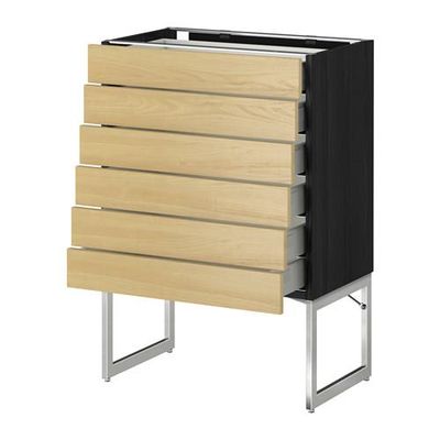 МЕТОД / МАКСИМЕРА Напольн шкаф 6фронт пнл/6 низ ящ - 60x37x60 см, Тингсрид под березу, под дерево черный