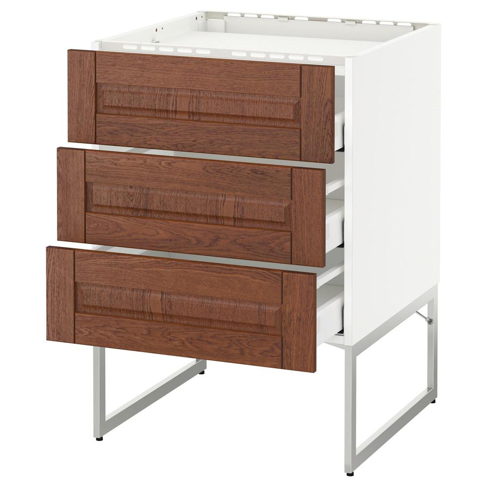 МЕТОД / МАКСИМЕРА Напольн шкаф/3фронт пнл/3ящика - белый, Филипстад коричневый, 60x60x60 см