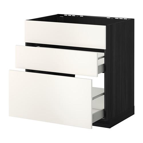 МЕТОД / МАКСИМЕРА Напольн шк п-мойку+3фрнт пнл/2ящ - под дерево черный, Веддинге белый, 80x60 см
