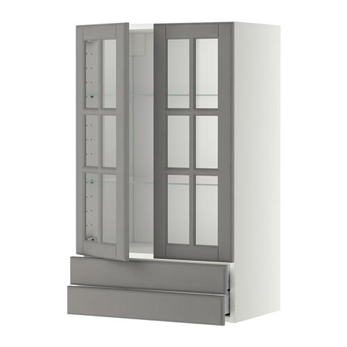 МЕТОД / МАКСИМЕРА Навесной шкаф/2 стек дв/2 ящика - белый, Будбин серый, 60x100 см