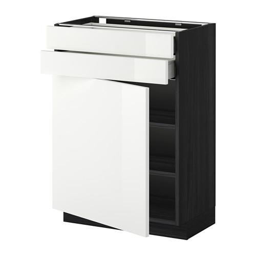 МЕТОД / МАКСИМЕРА Напольный шкаф с дверцей/2 ящиками - под дерево черный, Рингульт глянцевый белый, 60x37 см