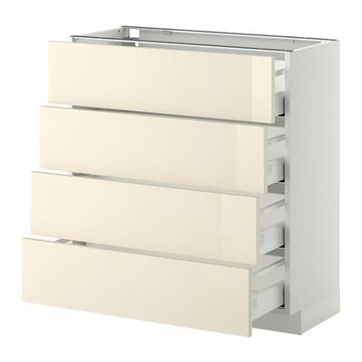МЕТОД / МАКСИМЕРА Напольн шкаф 4 фронт панели/4 ящика - 80x37 см, Рингульт глянцевый кремовый, белый