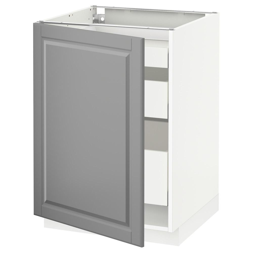 МЕТОД / МАКСИМЕРА Напольный шкаф с 1двр/3ящ - белый, Будбин серый, 60x60 см