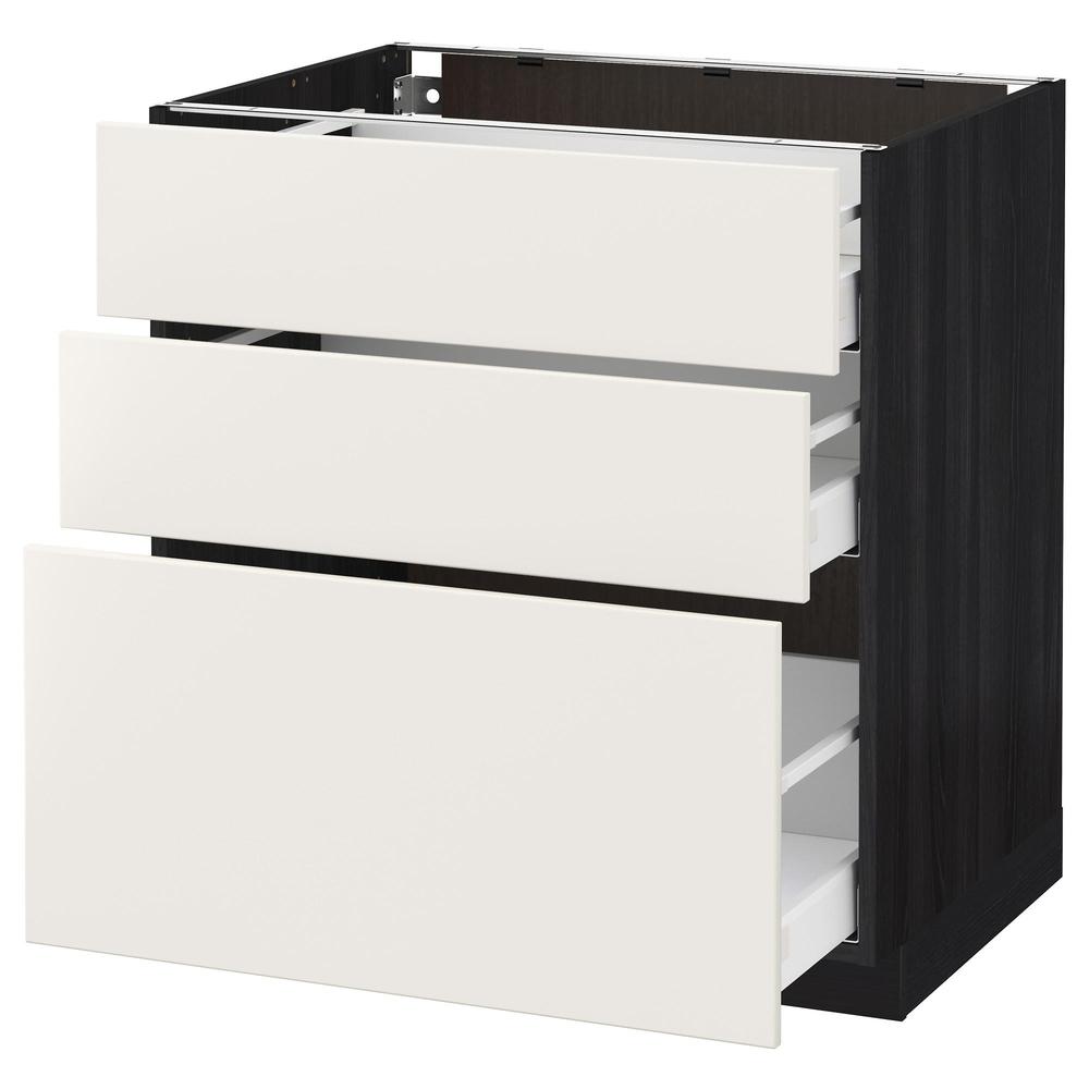 МЕТОД / МАКСИМЕРА Напольный шкаф с 3 ящиками - под дерево черный, Веддинге белый, 80x60 см