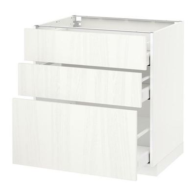 МЕТОД / МАКСИМЕРА Напольный шкаф с 3 ящиками - 80x60 см, Росдаль белый ясень, белый