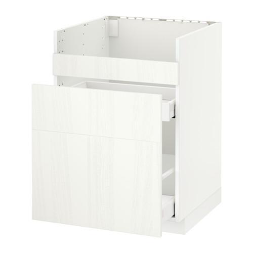 МЕТОД / МАКСИМЕРА Нап шкаф п/мойку ДУМШЁ/3фасада/2ящ - 60x60 см, Росдаль белый ясень, белый