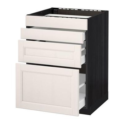 МЕТОД / МАКСИМЕРА Нап шкаф д/духовки/4фасада/3ящика - 60x60 см, Лаксарби белый, под дерево черный