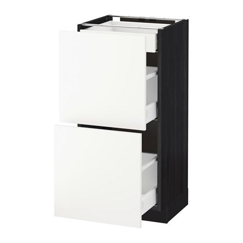 МЕТОД / МАКСИМЕРА Напольный шкаф/2фасада/3ящика - под дерево черный, Хэггеби белый, 40x37 см