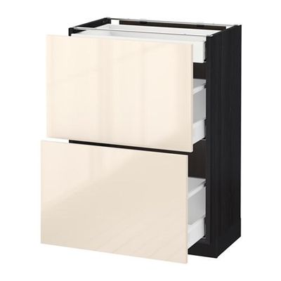 МЕТОД / МАКСИМЕРА Напольный шкаф/2фасада/3ящика - 60x37 см, Рингульт глянцевый кремовый, под дерево черный