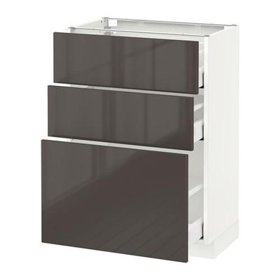 МЕТОД / МАКСИМЕРА Напольный шкаф с 3 ящиками - 60x37 см, Рингульт глянцевый серый, белый
