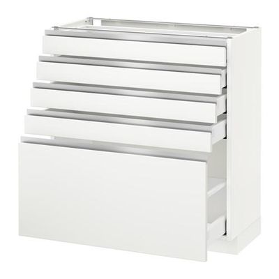 МЕТОД / МАКСИМЕРА Напольный шкаф с 5 ящиками - 80x37 см, Нодста белый/алюминий, белый