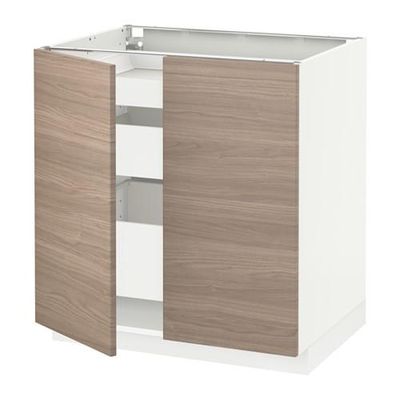 МЕТОД / МАКСИМЕРА Напольный шкаф с 2дверцами/3ящиками - Брокхульт под грецкий орех светло-серый, белый