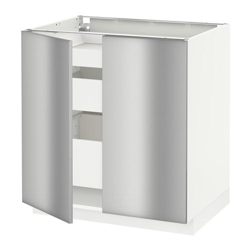 МЕТОД / МАКСИМЕРА Напольный шкаф с 2дверцами/3ящиками - белый, Гревста нержавеющ сталь