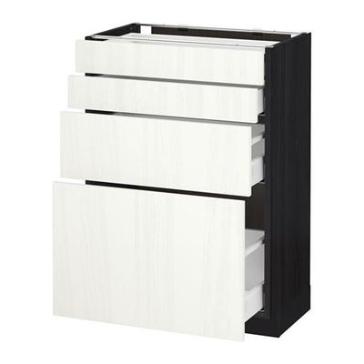 МЕТОД / МАКСИМЕРА Напольн шкаф 4 фронт панели/4 ящика - 60x37 см, Росдаль белый ясень, под дерево черный