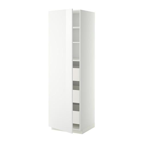 МЕТОД / МАКСИМЕРА Высокий шкаф с ящиками - белый, Рингульт глянцевый белый, 60x60x200 см