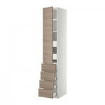 МЕТОД / МАКСИМЕРА Выс шкаф с плк/6 ящк/ дверц/4 фрнт - 60x60x220 см, Брокхульт под грецкий орех светло-серый, белый