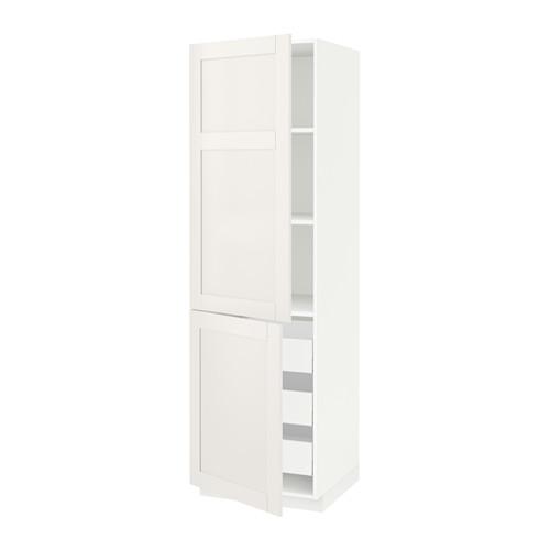 МЕТОД / МАКСИМЕРА Высокий шкаф+полки/3 ящика/2 дверцы - белый, Сэведаль белый, 60x60x200 см
