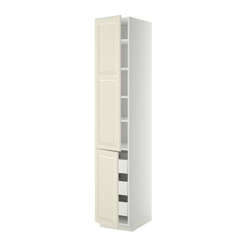 МЕТОД / МАКСИМЕРА Высокий шкаф+полки/3 ящика/2 дверцы - белый, Будбин белый с оттенком, 40x60x220 см