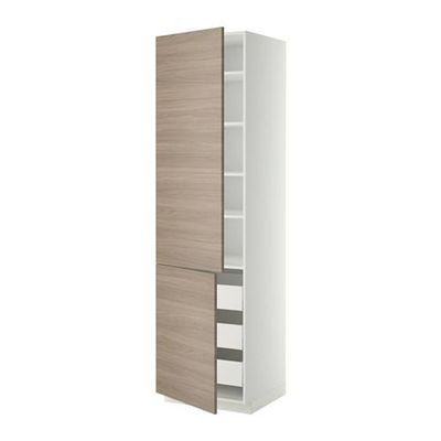 МЕТОД / МАКСИМЕРА Высокий шкаф+полки/3 ящика/2 дверцы - белый, Брокхульт под грецкий орех светло-серый, 60x60x220 см