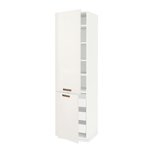 МЕТОД / МАКСИМЕРА Высокий шкаф+полки/3 ящика/2 дверцы - 60x60x220 см, Мэрста белый, белый