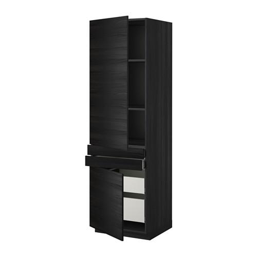 МЕТОД / МАКСИМЕРА Выс шкаф+полки/4 ящк/2двр/2фрнт - под дерево черный, Тингсрид под дерево черный
