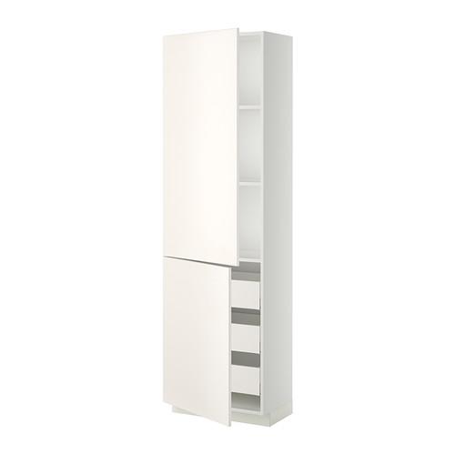 МЕТОД / МАКСИМЕРА Высокий шкаф+полки/3 ящика/2 дверцы - белый, Веддинге белый, 60x37x200 см