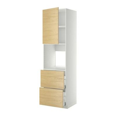 МЕТОД / МАКСИМЕРА Выс шк д/дхвк+двр/2фрнт/2выс ящ - 60x60x220 см, Тингсрид под березу, белый
