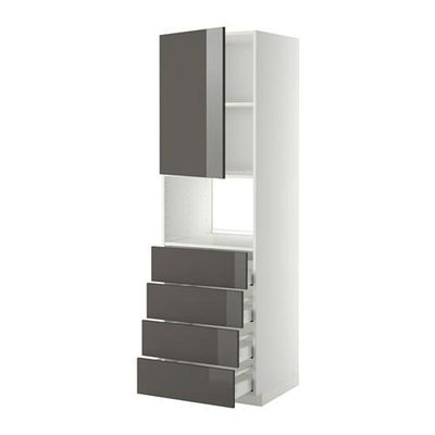 МЕТОД / МАКСИМЕРА Высок шкаф д/духовки/дверца/4ящика - 60x60x200 см, Рингульт глянцевый серый, белый