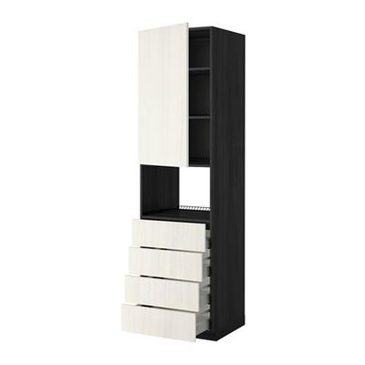 МЕТОД / МАКСИМЕРА Высок шкаф д/духовки/дверца/4ящика - 60x60x220 см, Росдаль белый ясень, под дерево черный