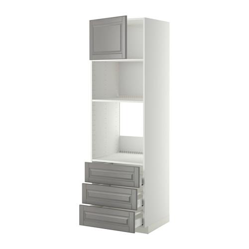 МЕТОД / МАКСИМЕРА Высок шкаф д/духовки/СВЧ/дверца/3ящ - белый, Будбин серый, 60x60x200 см