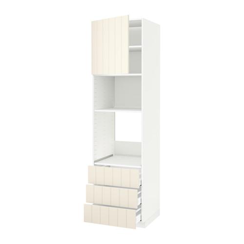МЕТОД / МАКСИМЕРА Высок шкаф д/духовки/СВЧ/дверца/3ящ - белый, Хитарп белый с оттенком, 60x60x220 см