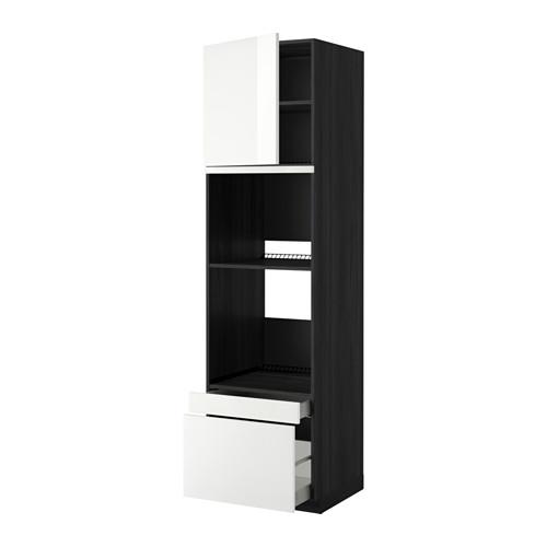 МЕТОД / МАКСИМЕРА Выс шкаф д/дхвк/комб дхвк+двр/2ящ - под дерево черный, Рингульт глянцевый белый, 60x60x220 см