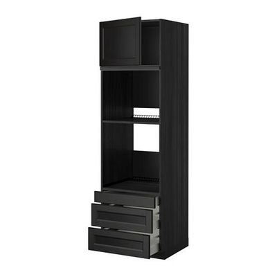 МЕТОД / МАКСИМЕРА Выс шкаф д/дхвк/комб дхвк+двр/3ящ - 60x60x200 см, Лаксарби черно-коричневый, под дерево черный