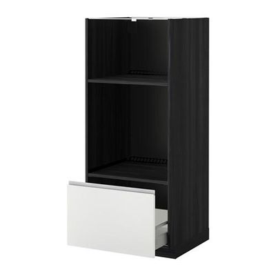МЕТОД / МАКСИМЕРА Высокий шкаф с ящиком д/духовки/СВЧ - Нодста белый/алюминий, под дерево черный