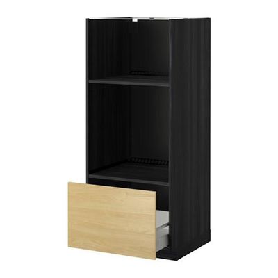 МЕТОД / МАКСИМЕРА Высокий шкаф с ящиком д/духовки/СВЧ - Тингсрид под березу, под дерево черный