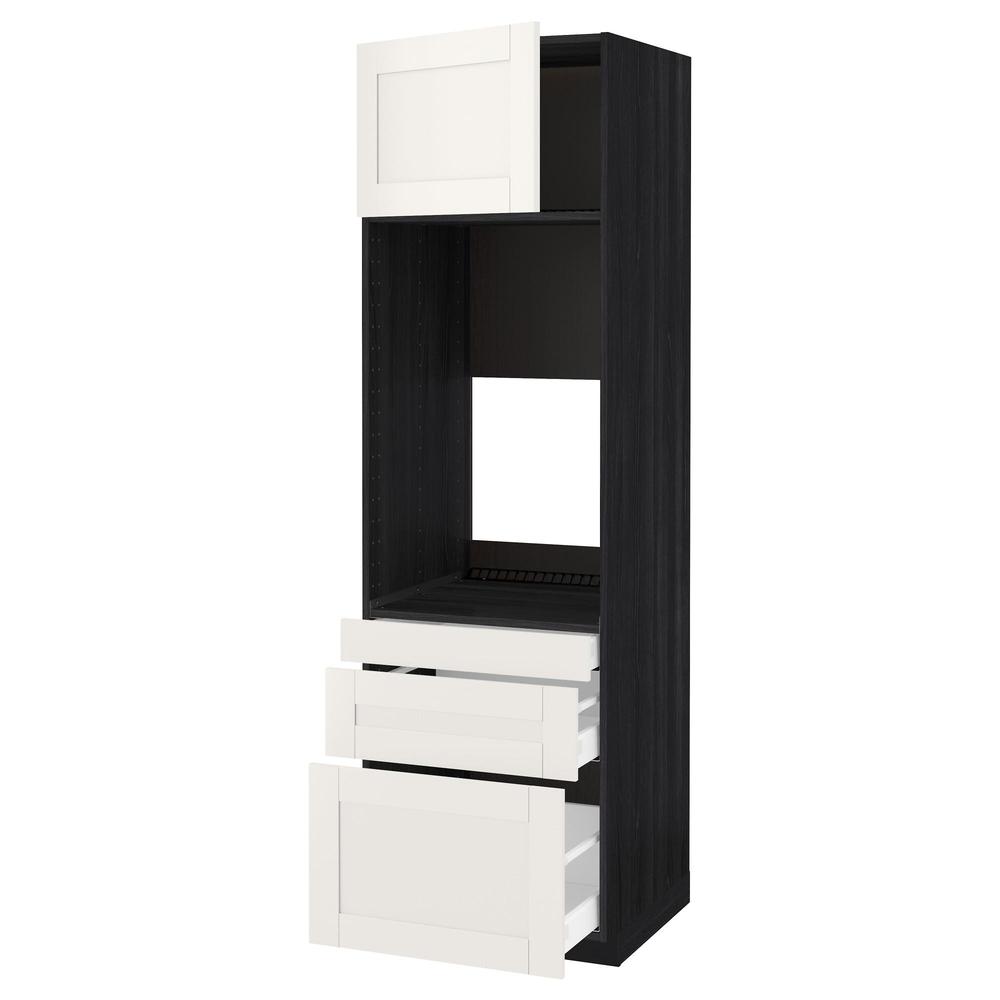 МЕТОД / МАКСИМЕРА Выс шкаф д/двойн духовки/3ящ/дверца - под дерево черный, Сэведаль белый, 60x60x200 см