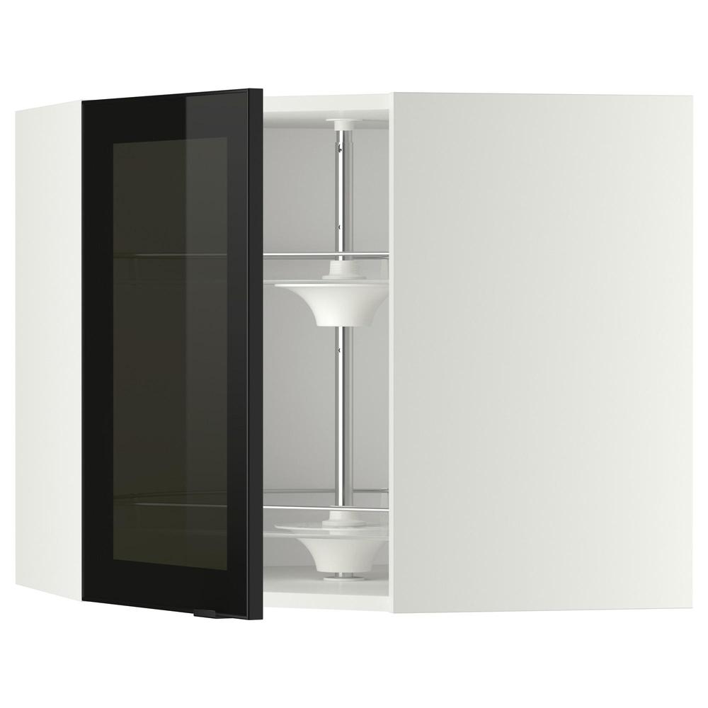 МЕТОД Углов навесн шк с врщ скц/сткл дв - белый, Ютис дымчатое стекло/черный, 68x60 см