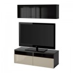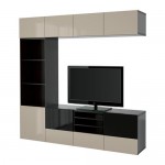 БЕСТО Шкаф для ТВ, комбин/стеклян дверцы - черно-коричневый/Сельсвикен глянцевый/бежевый/дымчатое стекло, направляющие ящика, плавно закр
