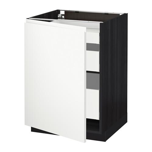 МЕТОД / МАКСИМЕРА Напольный шкаф с 1двр/3ящ - под дерево черный, Воксторп белый, 60x60 см