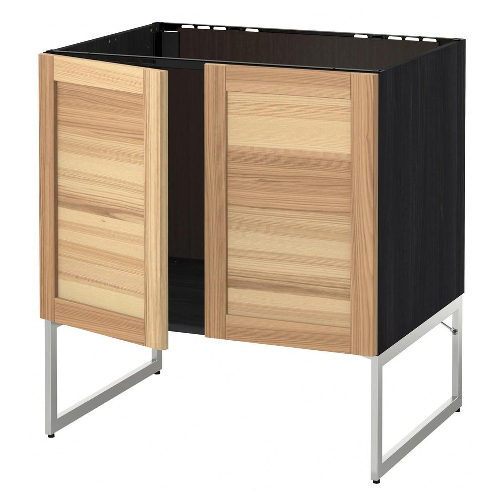 МЕТОД Напольн шкаф д раковины+2 двери - под дерево черный, Торхэмн естественный ясень