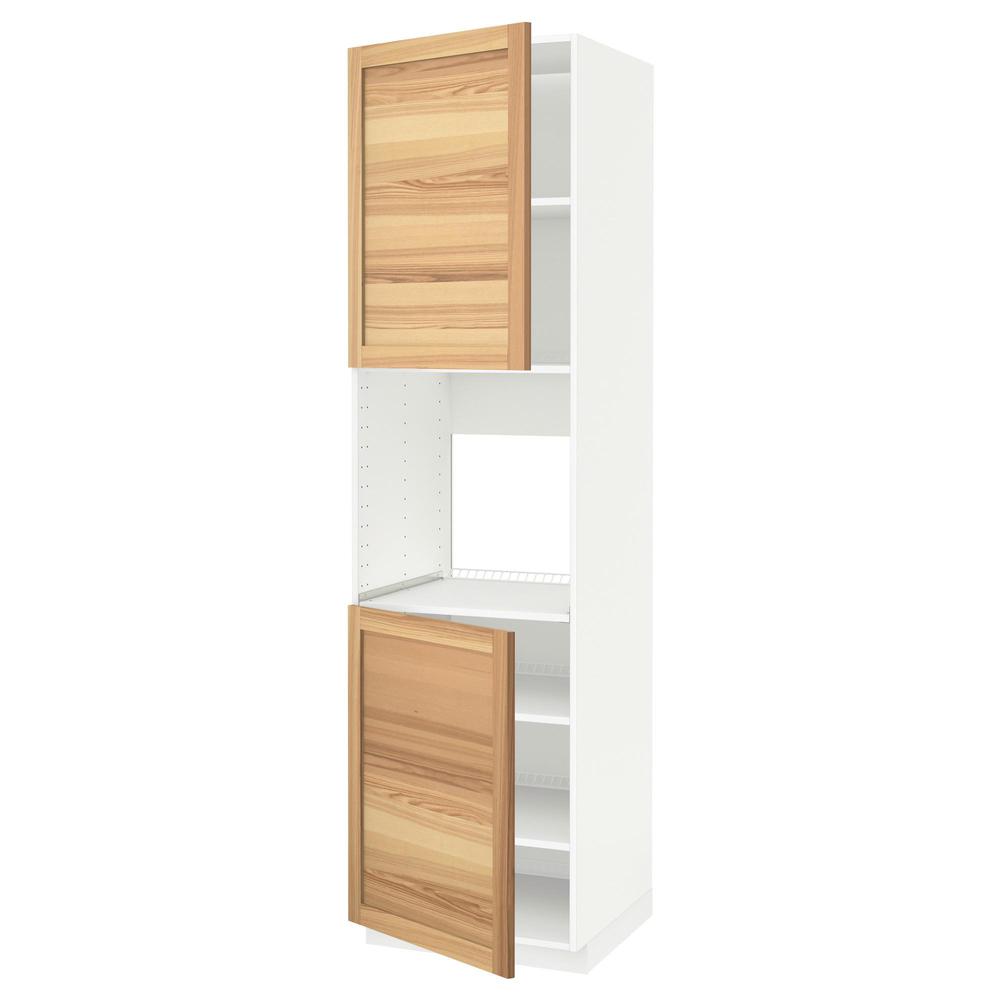 МЕТОД Высок шкаф д/духовки/2дверцы/полки - белый, Торхэмн естественный ясень, 60x60x220 см