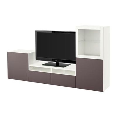 БЕСТО Шкаф для ТВ, комбин/стеклян дверцы - белый/Вальвикен темно-коричневый, прозрачное стекло, направляющие ящика,нажимные